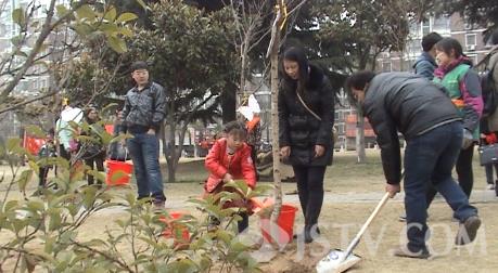 今天上午9点半,接近200名爱心志愿者来到了位于中国南北地理分界线的淮安市虹桥广场东侧绿化带。虽然天空烟雾蒙蒙,冷风飕飕,但参与活动的家长与孩子、志愿者热情高涨。挖坑的,拎水的、扶树苗的、培土的,全情投入到了植树活动中来,并在每棵栽下的小树上系认养牌,期望通过自身的努力,让更多人关注绿化,关注生态环境,凝聚更多力量为淮安生态建设贡献力量。