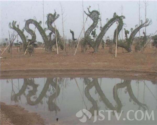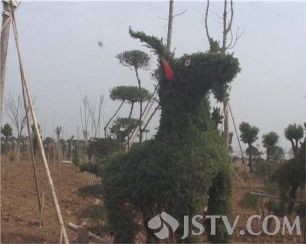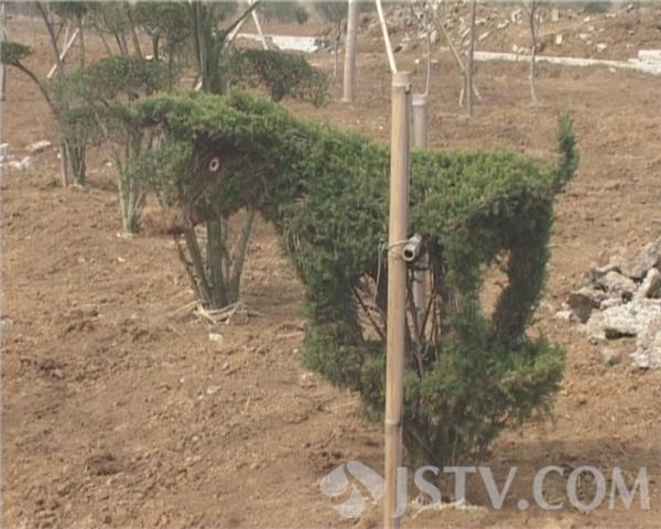 植树节前夕,南京六合区马鞍街道的一家农业园在给园区植树时,突发奇想,将要栽下的树苗制作成各种植物雕塑,不但美化了环境,而且给园区增添了观赏性。