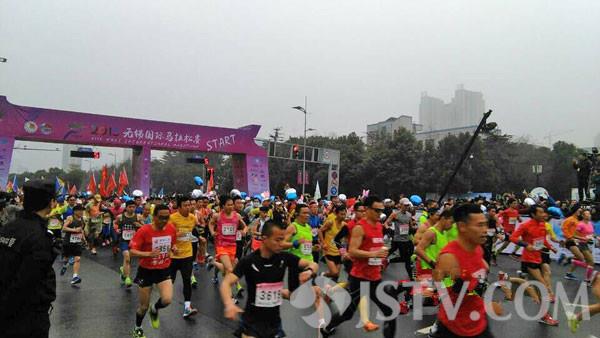 由中国田径协会、江苏省体育局、无锡市人民政府主办的2015无锡国际马拉松赛今天上午开跑。无锡马拉松赛是江苏省内唯一的全程马拉松赛事,一直以来以风光美如画卷的赛道而闻名 2015无锡国际马拉松赛的赛道,保留了以往鼋头渚风景区、蠡湖之光百米高喷、十里芳径、长广溪湿地公园等美景,同时新增了蠡园、湖滨路、雪浪山、宝界桥等景致,融入了更多的湖光山色,让跑友始终沉醉在桃红柳绿、青山碧水之间,体味“人在画中跑,春意心中留”。 此次无锡国际马拉松参赛人数突破3万,其中全程和半程参赛人数达到2万人 。