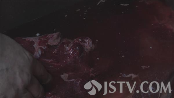 从事餐饮业的南京市民小周说,近期他到南京江北的沪江商贸城购买牛肉,当他来到这家曹奎牛羊肉批发经营部的时候,发现了问题:“菜市场买的牛肉大概是30元一斤,有一次我到大市场批发那个牛肉,大概是18到20元一斤,感觉很奇怪,有一次我一大早就去批发那个牛肉,发现是化过冻的牛肉,上面还被抹了牛血还是什么东西的,我就感觉很奇怪。”