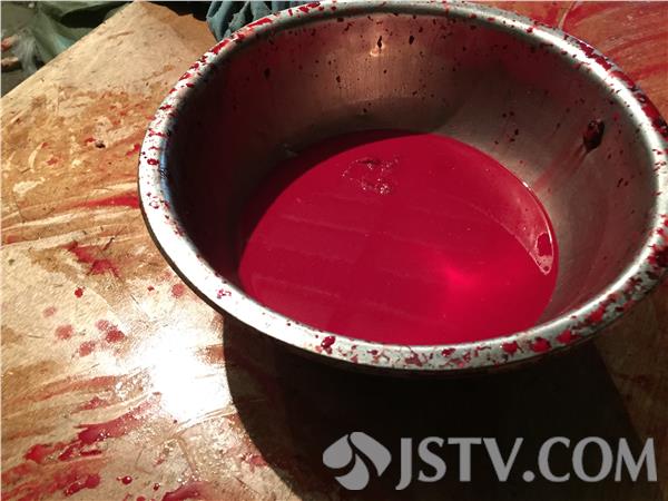 在冷库内,执法人员还发现了大量冷冻和已经化冻的红色液体,这些液体虽然看着像牛血,但也都没有牛血的腥臭味。