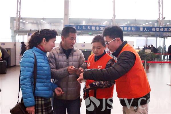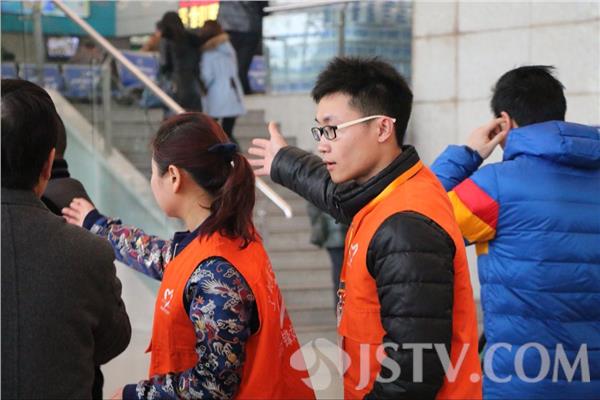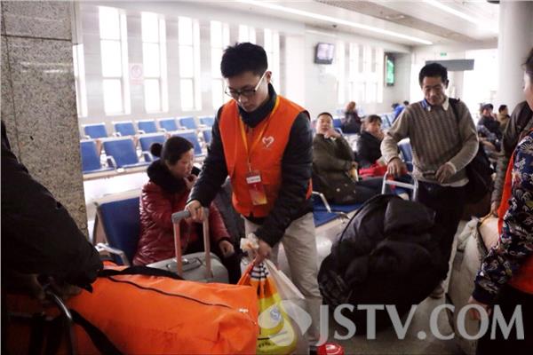 今天是2015年春运的最后一天,一早,南京铁路职业技术学院的8名“小甜橙”志愿者,来到南京火车站,开展志愿服务,他们为旅客指路、拿行李、解答问题,旅客有什么不便的事情,只要找到他们,志愿者们都能尽到自己的努力,满腔热忱地予以帮助。