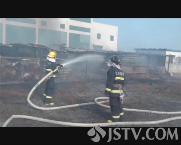 在火灾事故现场,只见木材厂周边的草坪已经被点燃,眼看火势就要烧到旁边的高压配电机。根据现场情况,消防队员随即利用水枪对火势进行了控制,由于火势已经蔓延至木材堆垛,为防止火势扩大,现场及时进行了灭火。所幸,很快火势被遏制,未造成大的影响。
