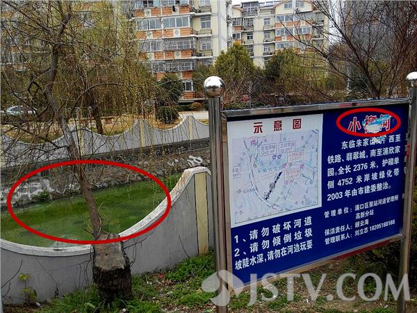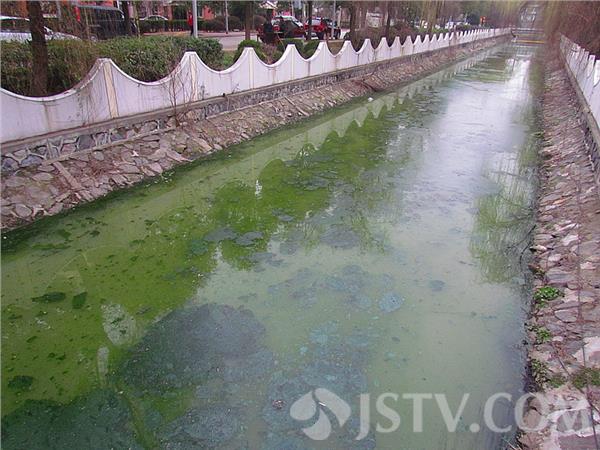 南京一条臭气熏天的“绿河”。该河流位于南京浦口区浦欣家园小区内,河的两侧是住宅区,河面上漂浮着一层墨绿色的粘稠物,平日里河水臭气熏天让人受不了……