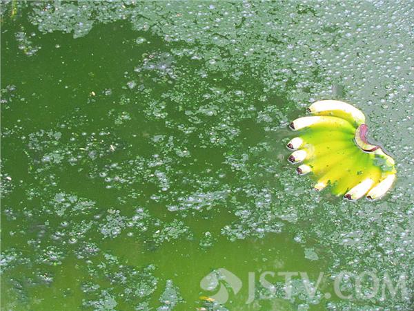 笔者经过现场看到,河道中浮着大量绿色的块状物,成片成片的连在一起,从远处就能闻到呛人的臭味。由于小柳河周边有多个居民小区,河水的变绿变臭,不仅影响市容环境,河水散发的臭味也会对周边居民的生活产生一定的影响。特别刺眼的是,污水中飘浮着一串香蕉,黄、绿相间。