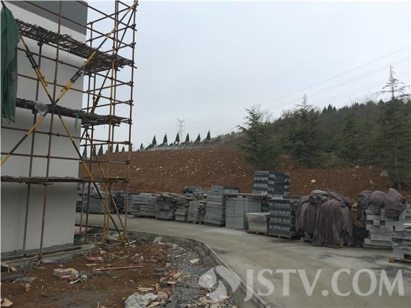 通过航拍画面可以清楚看到,在栖霞区西岗街道龙泉山公墓的边缘,一片新墓地正沿着山体往上建设,公墓旁边,也有一片建筑工地,正在建设四栋房屋。施工工地旁边的公示牌显示,这里是西岗街道民生建设工程,工程名称为龙泉山公墓入口片区环境综合整治工程,内容并不包含公墓建设。对此,栖霞区国土局方面表示,龙泉山公墓的新修墓地超出审批范围,已经被他们查处。