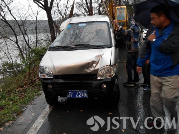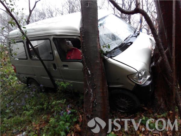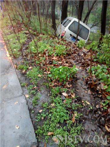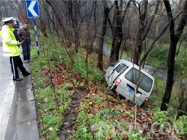17日下午14:30左右,南京东郊风景区龙脖路发生一起交通事故,一辆微型面包车下坡时车速较快转弯时车辆失控滑下路面,幸好被大树阻挡否则车辆翻滚后果不堪设想,幸好没有人受伤。