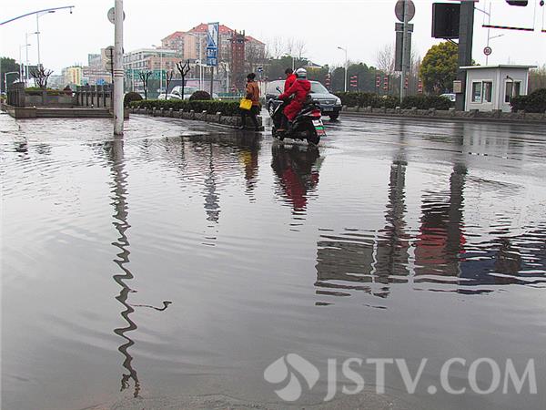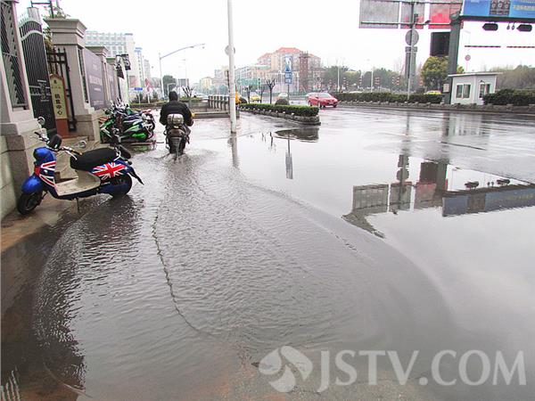 江苏今年首场大雨今天落下,导致城区道路湿滑,让南京城多处道路路面出现积水,这给居民的出行造成诸多不便。