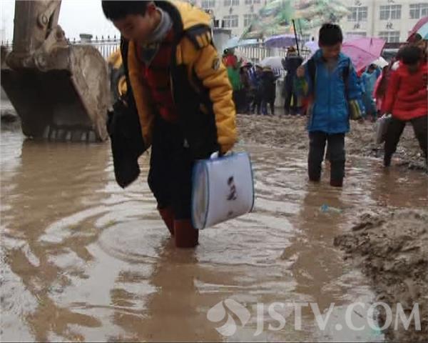 3月19日讯,徐州市三环北路与三环西路交汇处正在进行道路施工,致使位于该路口附近的徐州市玉潭实验学校门口坑坑洼洼,加上最近两天,徐州地区连续阴雨,导致学校门前积水严重。尤其在放学的时候,家长和孩子们几乎无法正常通行,孩子们不得不从30多公分深的泥水里趟行。
