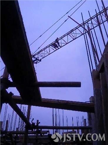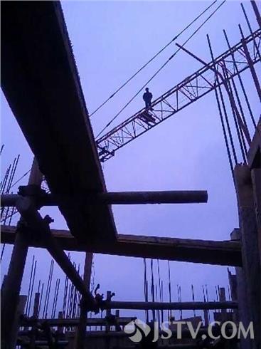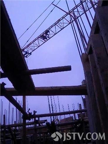 一名来自安徽阜阳,贺姓建筑工人今天12点多给I拍拍记者来电,说今天上午,在镇江句容市华阳路、大润发旁边的一家建筑工地上,发生了50多名建筑工人讨薪,与甲方人员发生冲突,两名讨薪的建筑工人爬上几十米高的塔吊的事件。