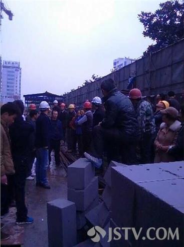 这位贺姓工人说,大家对尚余的50%的欠薪没有着落和说法有意见,这几天,陆续地从安徽、湖北等地来到了句容,要求讨一个说法。今天上午,讨薪人员阻止施工,双方发生了冲突。目前,两名工人还在塔吊上,情绪激动。