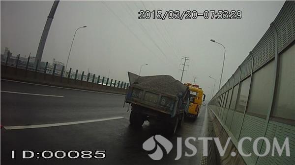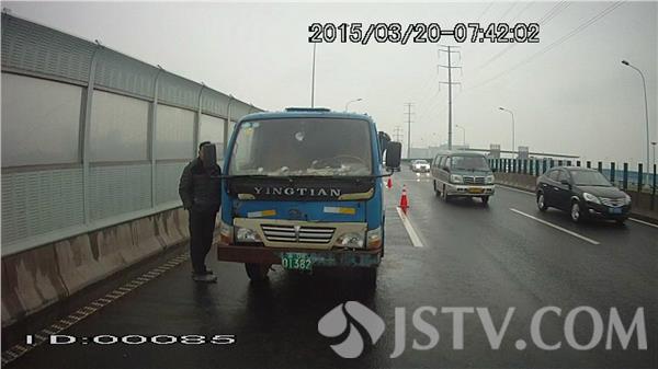 3月20日7时40分许,南通市交警支队九大队的民警在南通长江路高架紫琅路至洪江路路段巡逻时发现一辆满载石子的农用车停在高架路边,并且未设置任何警示标志,民警立即下车设置了警示标志后上前对驾驶员进行了询问,原来这辆农用车因超载严重坏在了高架上。