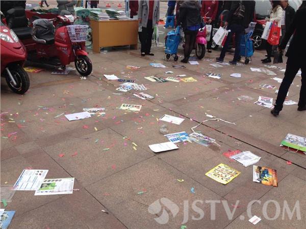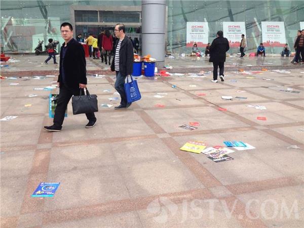 但记者在现场看到,美中不足的是,展会的环境卫生问题被忽视了。由于参展人数及观众较多,不少商家都自制了介绍自家产品的纸质广告,来了一个观众,就热情地往观众的手里塞,可不少观众看完甚至看都不看就随手扔掉了,导致会场内外遍地垃圾,记者置身于展览会的现场,如同走进了遍地垃圾的场所,更让记者困惑的是,尽管环境卫生如此糟糕,但记者在会场内外却没有看见一名环卫工人清扫垃圾。