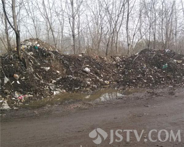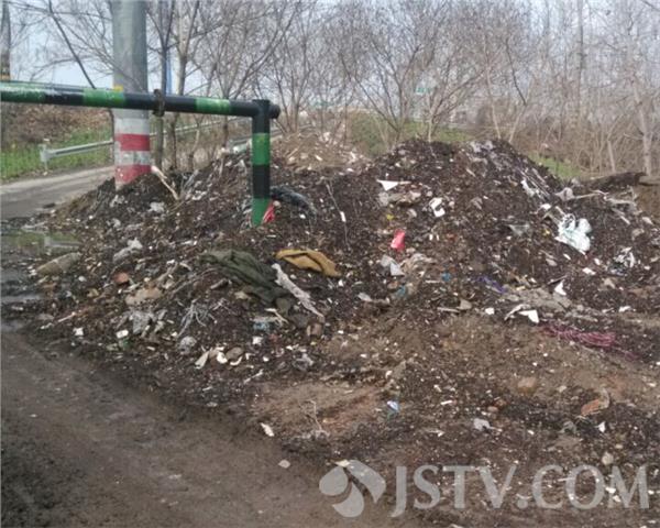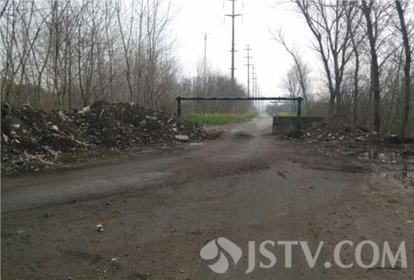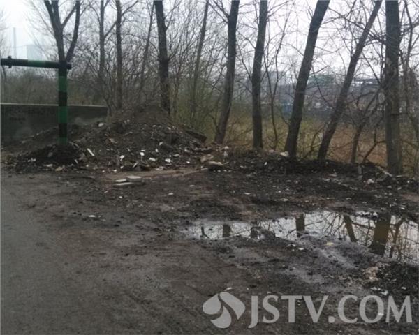 现场看到大桥下有数堆建筑垃圾和渣土,其中还有不少的生活垃圾,现场路中央的限高栏都被埋了近1米多,被倾倒了足有两三车的渣土,还有一些生活垃圾,就连路上的限高栏的柱子都被埋了1米多。