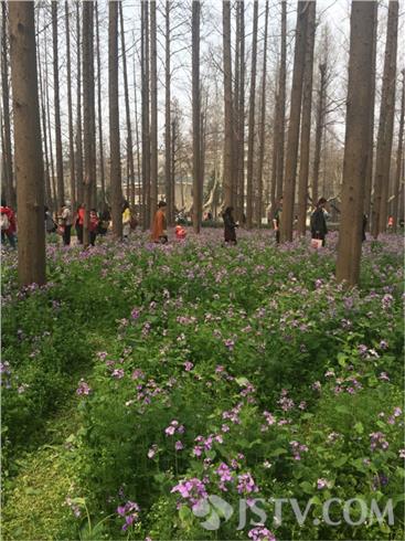 虽然记者赶到校园已是临近中午饭点的时候,但南理工里热闹的简直可以用“游人如织”来形容。值盛开期的二月兰在大片水杉的映衬下,暗香浮动,成了一片紫色和绿色交织的海洋。不过虽然花美引得游人醉,但无数慕名而来的游客们,依旧让二月兰很受伤。即便有每天三班倒的90名大学生志愿者做引导,游人的不自觉行为依然随处可见。为了营造背倚水杉,身处花海的美,必须要踏过一片二月兰才能走到树边。
