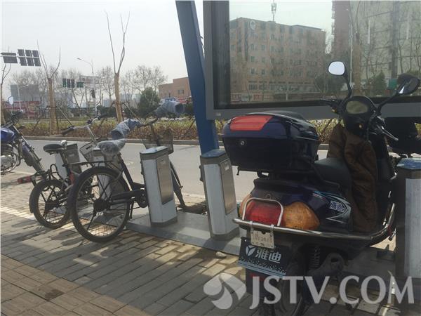 从今天开始,浦口公共自行车公司开始对73个新建租赁网点进行车辆上架测试。不过在泰山新村、新一城等较大的公共自行车网点记者也看到,蓝色的公共自行车车桩被不少普通自行车、电动车占据:“现在发现很多调试自行车的网点存放了很多市民很多自己的自行车和电动车影响了调试的工作。”