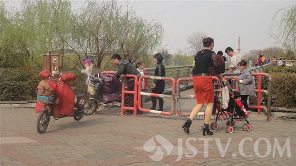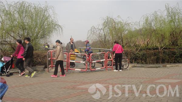 然而,笔者今天下午在“国防园步行桥”河西凤凰东街出口处看到,短短几分钟内却却有20多辆自行车、电动车在人行桥上强行通行,令管理人员和步行出行的市民直摇头。家住河西花开四季的吴大伯说:“这些人也太不自觉了,明明是人行桥,非得骑着车强行在桥上通行,而且把自行车、电动车子骑得非快,有时我和邻居们想安静地到桥上散个步,看看两岸的风景也问题提心吊胆的,生怕被电动车给撞上。”他希望这些人凡事不可随心所欲,要注意遵守社会公约,真正做到讲道德、讲文明、讲秩序。