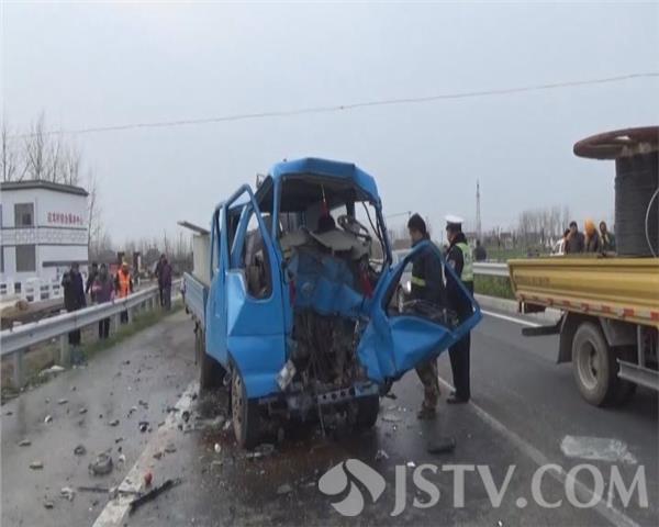 3月23日上午8点左右,扬州高邮市s237省道上,一辆运鱼的小型货车追尾撞上一辆半挂拖车,司机重伤被困,当地交警、消防、120等部门接警后迅速赶往现场救援。