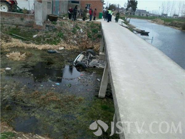 3月25日上午6时许在兴化市大营镇南元村通村公路路段,一辆小轿车在经过一座没有栏杆的桥梁时,突然坠入河道里,在这千钧一发之际,附近的村民及时伸出援手,将车上的二人救起。