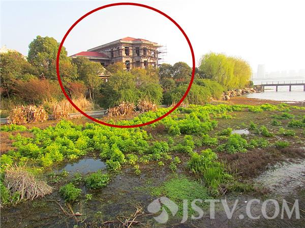 位于无锡太湖宝界公园内的一幢别墅现况凄惨,脚手架锈迹斑斑,近来却被网友比喻为“正在哭泣的别墅”,破坏优美环境,在风景秀丽的太湖边显得很刺眼。