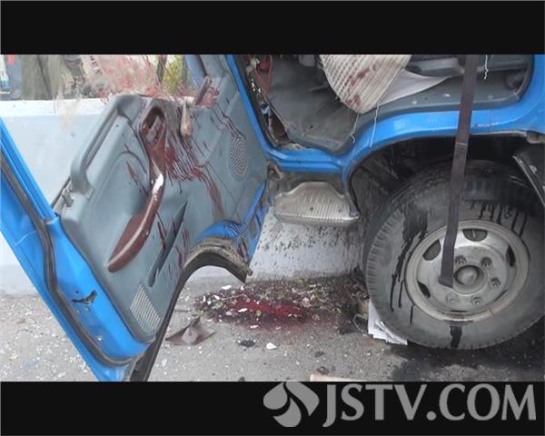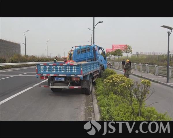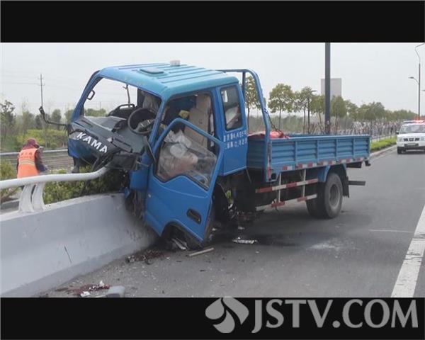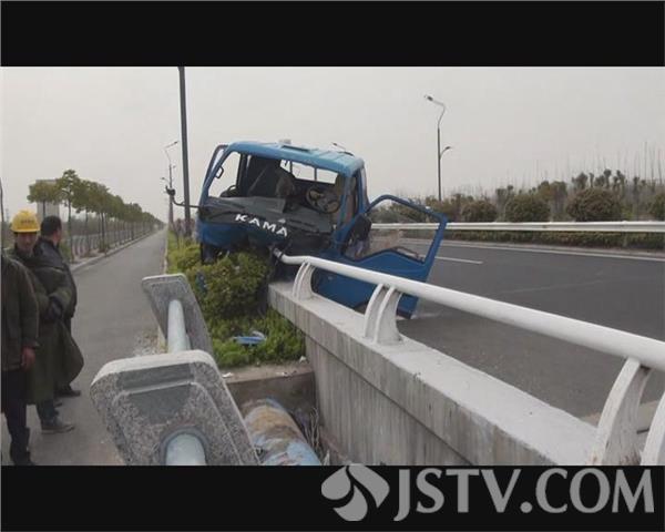 记者赶到事故现场时,受伤的小货车驾驶员已被120救护车接送到医院抢救,一辆小货车头朝东骑在桥水泥钢管护栏上,钢管弯曲变形,货车的前挡风玻璃破碎脱落,碎玻璃飞出有几十米远,一名环卫工人正在清扫非机动车道内的碎玻璃,地面上和驾驶室内是血迹斑斑,可见驾驶员受伤不轻。在现场的一名交通协管员告诉记者,车上一共两个人,驾驶员受伤了,事故可能是因为货车驾驶员疲劳驾驶引起的。