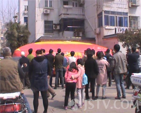 3月29日早上8点多,苏州花园路雅苑西山酒家对面,一名女子爬到6楼一户居民楼的阳台外要轻生,现场聚集了很多市民,但是由于前一天下午对面的菜场门口曾经有剧组来拍过戏,因此很多居民竟然以为是剧组在拍戏,不以为然,后来才发现不是拍戏,赶紧报警。