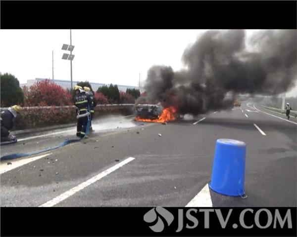 之后轿车便着起了火,而车内两人由于受伤,根本无力脱困。