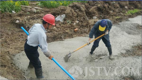 随后,记者在不远处的扬中市新坝镇五一村9组,看到当地自来水公司正在铺设自来水管道,所用的水泥并不多,施工人员告诉记者,只要5方左右混凝土,但也是用的商品混凝土。