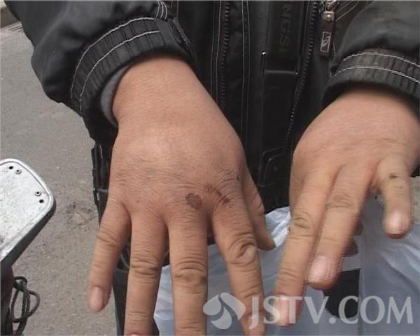祝师傅说,凌晨3点多钟,他前往单位上班,当走到热河路南京西站附近时,发现一名男子正在路边偷电瓶,于是他大喊一声“抓小偷”就冲了上去。男子见祝师傅紧追不舍,只得丢下就要到手的摩托车和14块电瓶,逃之夭夭。而祝师傅也在追赶小偷的过程中跌倒,导致双腿和双手受伤,这时接到报警的民警也迅速赶到了现场。