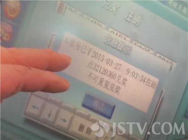 小王说,他是3月26号晚在宝应西安丰镇上的一家福彩投注点买的彩票。回家查询得知自己中了两千多块钱以后,小王激动得一宿没睡,第二天就赶去投注点兑奖,可工作人员的一番话却让他傻了眼。通过扫描彩票显示在2015年3月27号9点3分54秒已经兑奖。