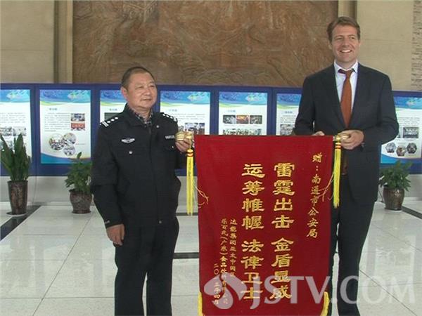 在得到南通警方打假战役大获全胜的消息后,法国达能集团亚太区达能饮料总裁Floris Sybrand Wesseling专程赶到了南通,向南通市公安局经侦支队和开发区公安分局赠送了锦旗。随后,达能中国饮料总裁韦洛思一行与南通市公安局经侦支队、开发区公安分局的主要负责人就保护知识产权、打击假冒商品等方面的经验进行了沟通交流。