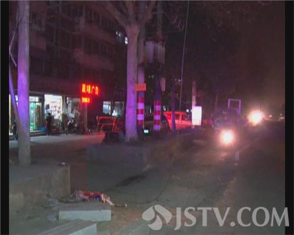 昨天晚上9点,南京栖霞区和燕路与泰兴路路口,一根横跨马路的空中电缆线被拉断后落到了马路上,从此经过的一辆公交车和两辆轿车遭了殃。
