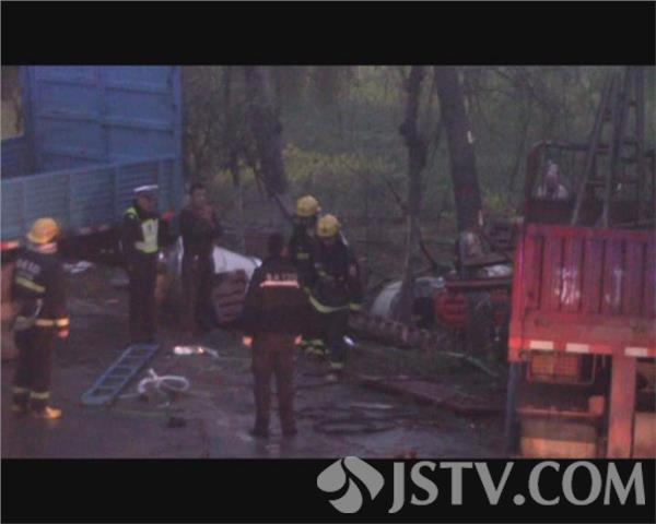 今天下午6点钟左右,盐城市大丰境内老204国道范公镇南侧,两辆行驶中的货车因避让不及,发生碰撞,一名司机则被卡进了变形的车厢内。接到报警后,当地公安、消防、医疗等部门随即赶赴现场进行处置。