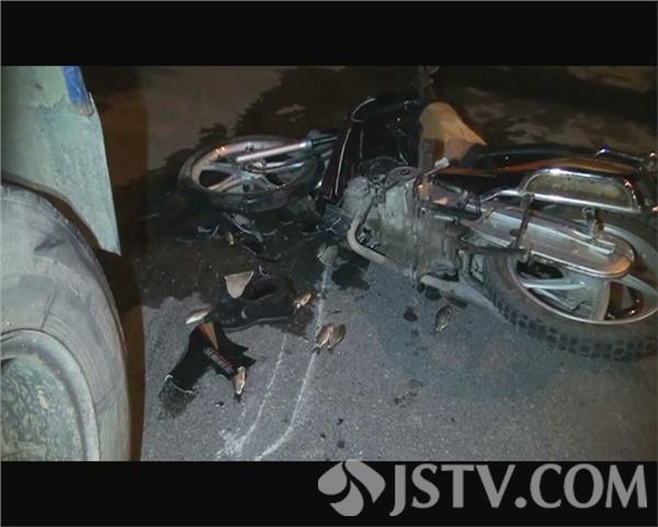 4月3日晚上7点钟左右,在射阳县幸福大道、县民政局门前的一处斑马线上,一辆由东向西行驶的摩托车因避让不及,与一辆由南向北在斑马线上横穿马路的变形拖拉机发生碰撞,事故导致摩托车驾驶员左大腿骨折受伤,车辆损毁严重。