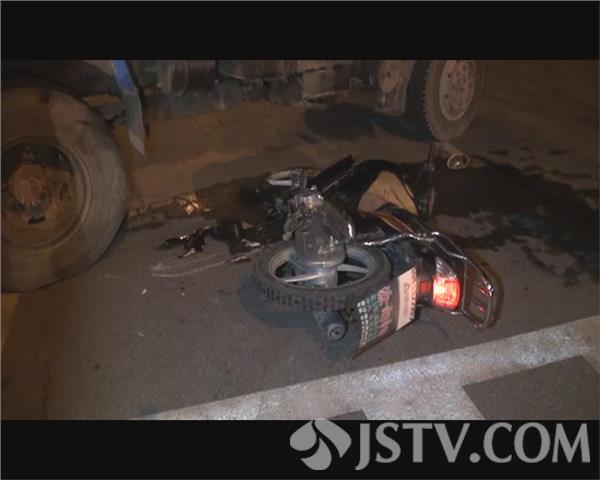 昨天晚上7点钟左右,在盐城射阳县民政局门前的一处斑马线上,一辆由东向西行驶的摩托车因避让不及,与一辆由南向北在斑马线上横穿马路的农用车发生碰撞,事故导致摩托车驾驶员左大腿骨折受伤,车辆损毁严重。