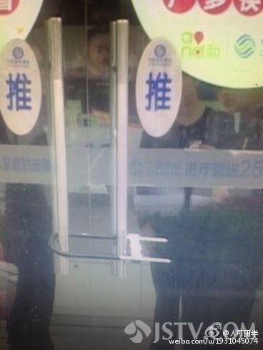 这名男子表示,自己是竹镇镇移动公司代理商。今天早上,他们营业厅的移动终端线在不知情的情况下,被移动公司给封住。他们上午来找移动公司讨说法,可是,没人接待,所以一气之下就将营业厅大门给锁上了。