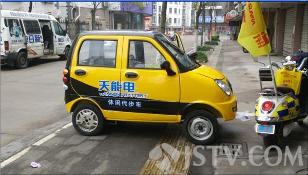 今天上午,记者在扬州市江都区一家电动车修理中心看到,门口停着一辆四轮的电动代步车。打开车门,可以看到,这车有前进、后退和停止三个档位,另外有刹车和“油门”。