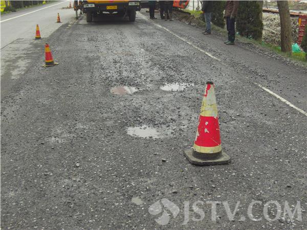 据卡车驾驶员介绍,他们开车由南向北赶往徐州,在行驶到此处看到大坑准备避让时已经来不及了,刹车后车子下滑到公路下面,所幸由于光缆遮挡才没有翻个底朝天,据介绍4月3日晚上曾经也有一辆农用车在此避让大坑发生倾覆,随后笔者与当地路政部门取得联系,他们答应先在大坑后面设立警示标志,待天气放晴后及时维修,消除道路行驶安全隐患。