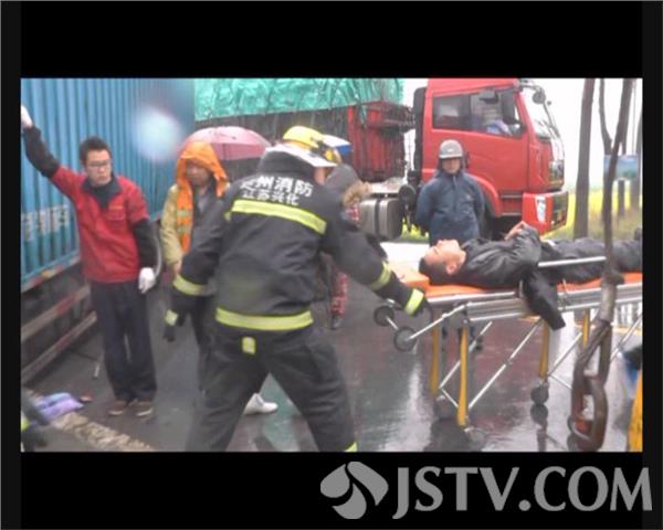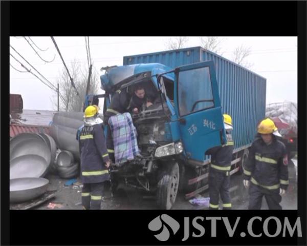 4月5日下午15点21分,泰州兴化市荻垛征王大桥附近,两辆大型货车相撞,车内一人被困,生死未卜。当地消防部门出动2车10人赶赴现场处置。