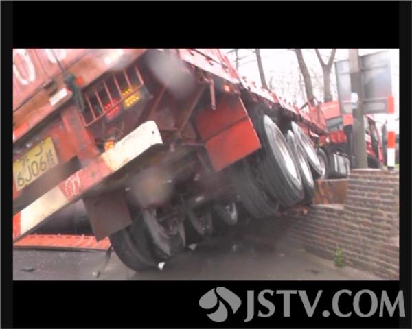 半挂车上的货物已经散落一地,并撞上了桥墩,而货车司机被卡在变形驾驶室内无法动弹,指挥员见此情形立即下令警戒现场,同时交警、医疗人员赶赴现场。由于车头损毁严重,现场救援人员决定采取破拆、扩张的方法进行营救,10分钟后,被困司机成功获救。