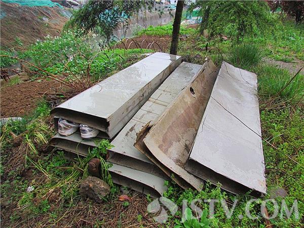 南京地铁二号线高架桥位于仙鹤门段沿线,桥外装饰扣板大片脱落。网友质疑,二号线建好才四五年,扣板就大面积脱落,要是砸到人后果不堪设想。如今被老百姓捡起来,用在菜地上挡土板,实在可惜。