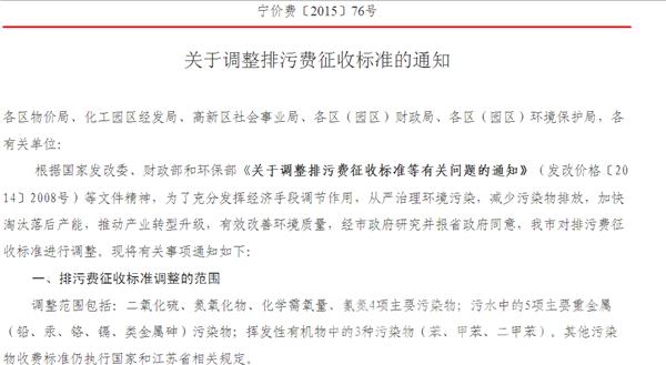 4月1日起,南京正式施行新的排污费征收标准,这是我省十多年来首次上调排污费,而且上调幅度较大。