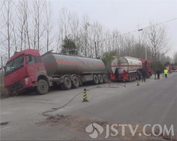 前晚,连云港灌南县一处村道上,一辆装有30吨危化品的槽罐车陷进了泥泞的道路中,消防人员紧急实施救援,直到昨天中午才彻底排除了险情。
