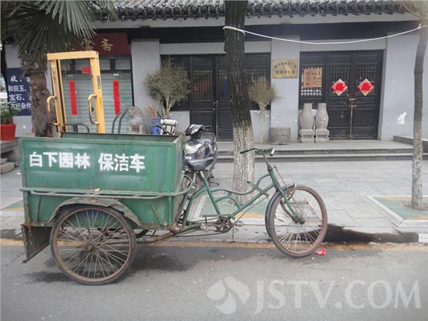 今天早上,笔者路过朝天宫广场,看到朝天宫万仞宫墙旁有一房子辟为了广场管理办公室。然而,仔细一看这办公室门前却脏乱差严重,与墙上悬挂着的金光闪闪的牌子极不相称。瞧,大门两旁是矗立着的扫帚,石狮子头上顶着一张脏脏的地垫,门前停放着一辆垃圾车,车下污水横溢已经发黑发臭。更为讽刺的是:在我市文明示范点的牌子上却搭了一把脏兮兮的拖把。真是令人汗颜!经常朝天宫广场锻练身体的刘大伯说:“类似情况我们天天见,以前有人反映过向他们提过意见,时间长了大家都已经熟视无睹了。”