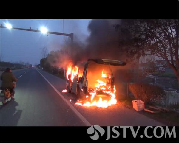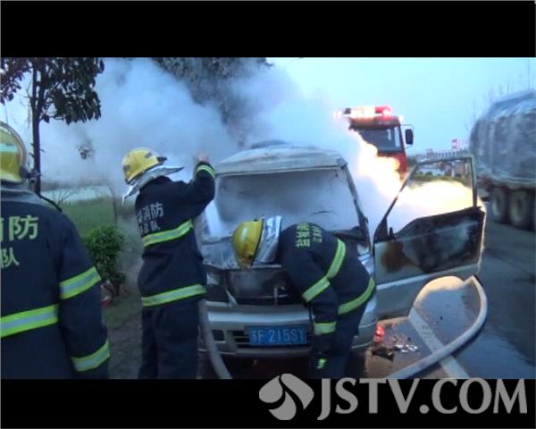 昨天下午六点钟左右,在204国道盐城市响水县,一辆面包车在行驶途中,突然车头冒烟起火。司机赶紧停车,用车载灭火器进行扑救。无奈灭火器已经过期,无法使用,司机只能眼睁睁的看着车辆被大火吞噬。