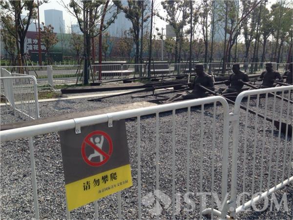 青奥雕塑被迫围挡 禁止攀爬