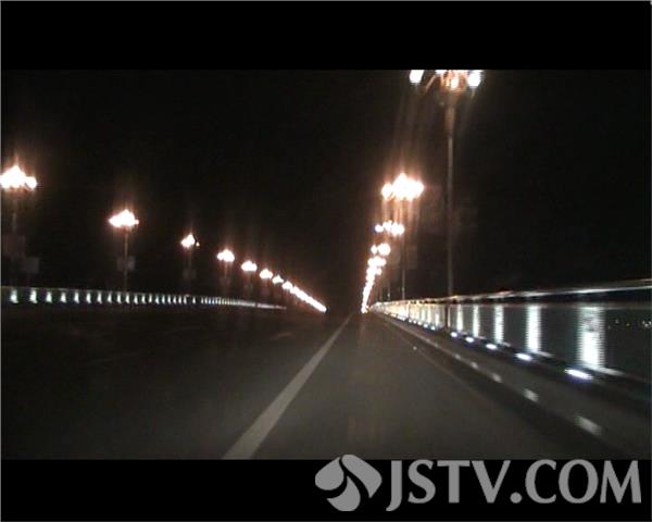 昨晚,记者驱车来到枚皋路大桥一探究竟。沿枚皋路从南向北穿过大桥,刚上桥时记者并没有发现什么异样,大桥两边路灯灯火通明,路况也很好。可就当记者驱车走到大桥正中间时,从桥中间往北一直到翔宇大道都是一片漆黑什么都看不见,路两边的路灯全部熄灭。