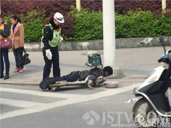 昨天下午17时23分,在南京内桥西北角,南京交管局二大队女警辅赵梦玥正在管理非机动车违法交通行为,此时一名趴在平板车上的残疾人出现在她的视野当中,见他行动很不方便,而且正值晚高峰期间,车流量很大,女警辅立即赶上前去把他护送过街。