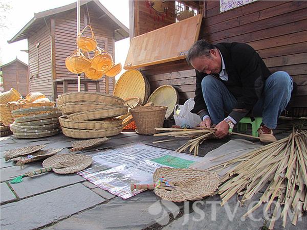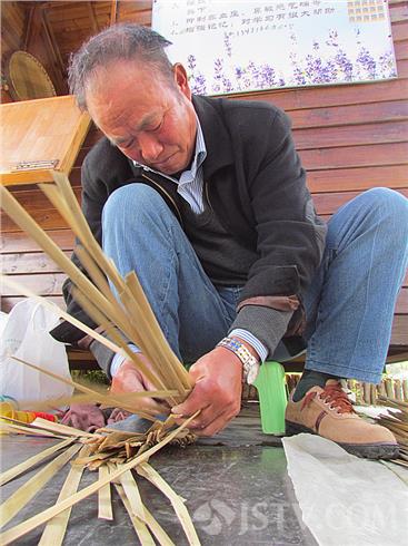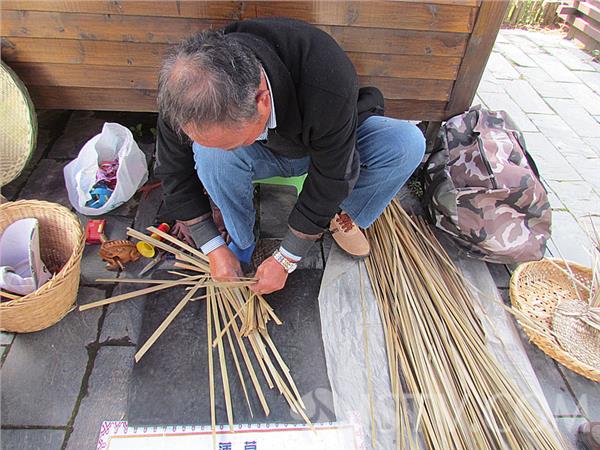 当笔者来到南京江宁街道美丽乡村黄龙岘村头,62岁的王尚顺用蒲草编蒲扇吸引不少游客围观。一根根蒲草在王尚顺的指尖来回穿梭,不一会儿的工夫,蒲扇便有了一个简单的成型。“现在找不到蒲子了,都是在冬天收集下来的。编织蒲鞋需要耐心,先编里子,再编鞋底。”王尚顺告诉笔者,这门手艺在上世纪六十代的农村很常见。“我二十岁的时候,跟师傅学的,一晃40多年过去了,一直还坚持,不忘这门手艺。如今景区用蒲子编织草鞋、蒲扇,每天还能赚不少钱。王尚顺说,自己这门手艺也是从两位师傅那里学来的,如今他们开人世。