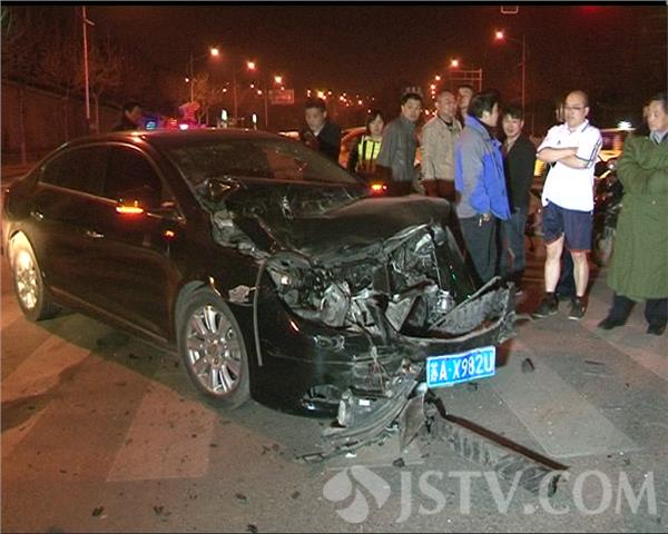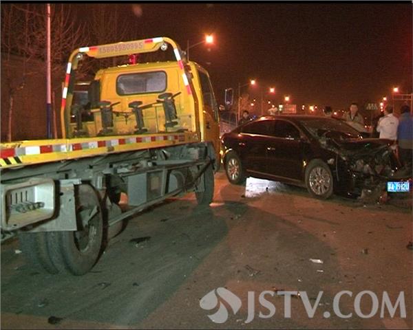 昨晚10点40分,在南京玄武区中山门大街顾家营路口,一辆轿车一头撞上一辆正在调头的清障车,由于速度很快,轿车被撞得面目全非。